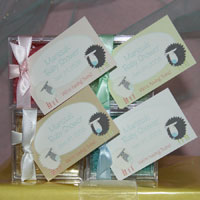 These are so cute we just can't control ourselves! We created this line of farm animal creatures for tv personality Victoria Recaño who hosted a second shower for her sister-in-law. (We helped with her first bridal shower and took part in her own baby shower February 2009 by creating a unique line of City Block DiaperCakes for her.) |