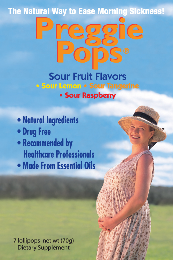 Preggie PopsThis is perfect for easing morning sickness! Gift mom with a box of these for comfort! •Natural Ingredients Contains (7) seven lollipops in Sour Fruit Flavors: Sour Lemon, Sour Tangerine, Sour Raspberry |