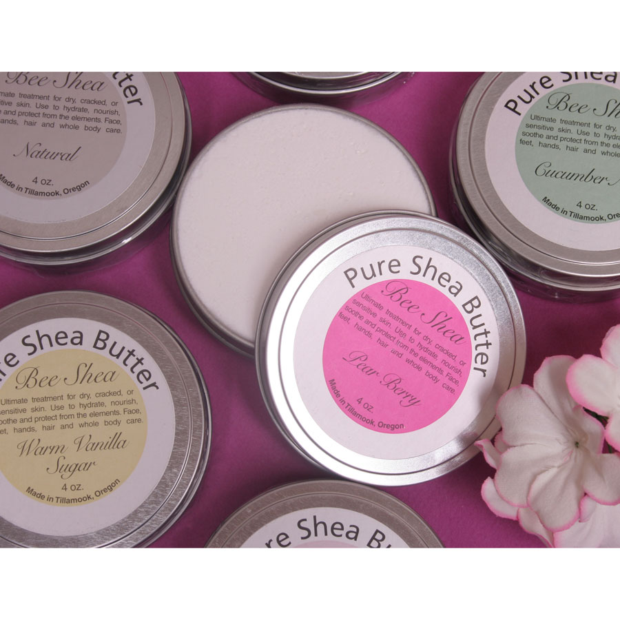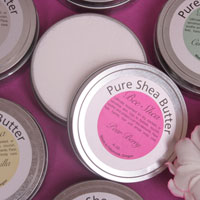 DELIGHTFUL! Pure Shea Butter, rich in vitamins A and E and has amazing benefits such as Your choice among several scents: Natural (perfect for a baby's bottom), Love Spell, Mango, Lavender Peppermint, and Cucumber & Aloe 4 oz. of pure shea butter makes a great hostess gift, gift for the new mom or prizes for game winners. |