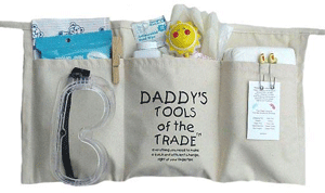 Daddy's Tools of the Trade™THE ORIGINAL DIAPER APRON!!! With the increased popularity of couples' baby showers, there is always the dilemma of what to get the daddy. Worry no more... Daddy's Tools of the Trade™ Diaper Changing Tool Belt is the ideal gift, which is practical, tasteful, and useful, yet will add that touch of humor.Your new Diaper Changing Tool Belt comes stuffed with the following twelve items: Daddy's Tools of the Trade™ (DTT 700) Baby Shower Games • Favors • Decorations