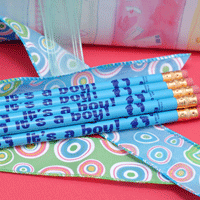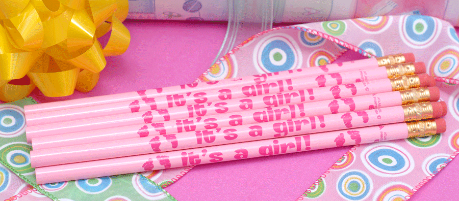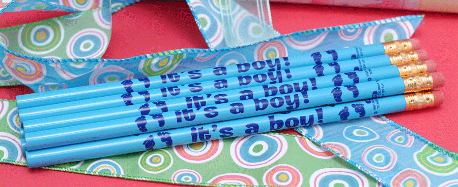 New Baby Pencils (FULL-SIZE) Nothing says "Shower" more than pencils celebrating the arrival of a new baby boy or new baby girl when doing word games. Choose among three of our most popular pencils or mix and match! It's a Girl! • It's a Boy • Bundle of Joy Pencils are unsharpened, but come equipped with erasers! And boy, do they last!!!