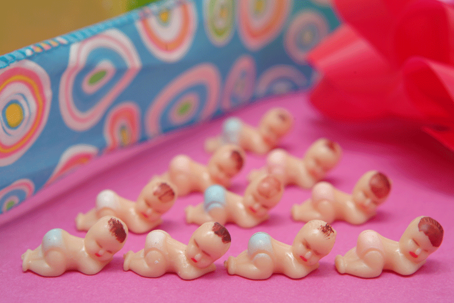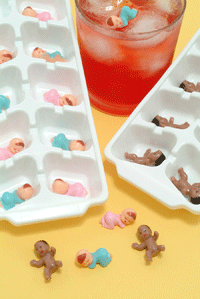 To play "My Water Broke", place one plastic baby inside this ice tray. Place them in your freezer at least 24 hours before your baby shower. The day of the shower, give everyone a cup with their baby frozen in the ice cube. At some point during the party, the ice will melt and their baby will become freed - thus, their "My water broke!"... The first one whose water breaks is the winner. The drink and cup pictured are not included. (BAB 321) (BAB 322) *PLEASE NOTE THAT ALTERNATE BABIES MAY BE SUBSTITUTED IF THESE ARE NOT AVAILABLE AT TIME OF ORDER. |