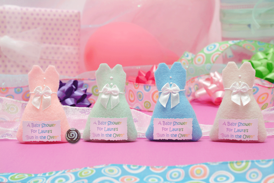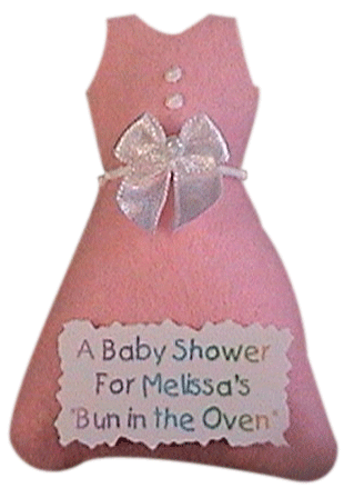 These adorable dresses (approx. 2-1/4" by 3-1/2") are handmade and will be the hit of any shower! To play: Pin an adorable handmade dress (may vary slightly) on each guest as they arrive. Each guest will wear the dress for the length of the shower. At some point announce that everyone is to open up the back of their dress. All dresses are stuffed with cotton to make the "belly. The winner is the guest (or guests) who has (have) the clay "Cini-Bun" inside. Object of the game: To be the one with the dress with the clay "Cini-Bun". You can request how many winners you would like and these will be packaged separately. Please allow up to 5 business days for creation plus time for delivery. This game may be available for rush shipping, but not guaranteed. Important note: If you think you may be adding more guests, order more than what you need. Minimum REORDER is 20. (BUN 300) |