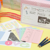 Created specifically for Babies R Us, we are proud to be able to offer this directly to you! Baby Shower Bundle contains three of our most popular games for up to 16 guests, a party planning checklist, guest sign-in sheet, gift tracking log and 16 of our keepsake notecards for new mommies.