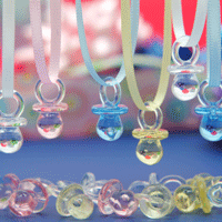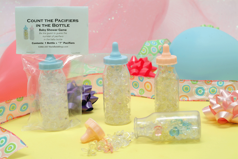 Don't Say "Mommy" Pacifier Game To play "Don't Say Mommy, " as your guests arrive, place a pre-strung necklace (made up of one pacifier and string tied together) around their neck. It's a quick explanation on the rules of the game: Don't say the word "mommy" (or the Guest of Honor's name or the word "baby"). If anyone catches another guest breaking the rules, that person then gets to snatch that person's necklace from her and proudly wear the addition. The guest at the end of the shower wearing the most necklaces is the winner! Variation: Don't cross your legs! Assembly Required Sold in Sets of (10) Matching Pacifiers and String |