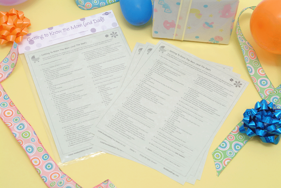 Give your guests the chance to get to know the new mom and the new dad with our newest game, Getting to Know the Mom (and Dad!) You have the option to personalize this game with their names. Give the new mom her own sheet to complete. That will serve as the answer key.