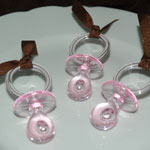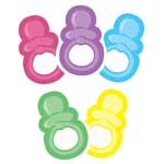 Napkin Ring - Large Pacifiers Use our cute pacifiers to adorn each guest's place setting with a special way to say "baby shower" by threading a napkin through the handle. Some hostesses prefer extra large binkies to play the "Don't Say Mommy's Name" game by choosing these pacifiers.Size approx 1.5" x 3" each Your choice among We do not mix pacifier colors within each bag.