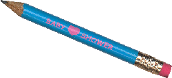 Baby Shower Pencils - Package of 25 baby shower pencils in light blue with pink wording. Pencils say "Baby Shower" with a heart in the middle with "badabadabingo" on the reverse side. Perfect for playing shower games. Adorable! Need additional pencils? Sold in sets of 5. (PEN 300) |