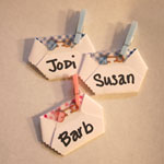 Set of 10 Handmade Paper Diapers / $11.95 Extra Winners / $1.19 each **BONUS** FOR A LIMITED TIME, with each set of 10 ordered, receive (1) Set of 10 Clothespins in Pink or Blue Blue (CPB 301) • Pink (CPP 301) I just wanted to thank you for the wonderful games you provided for the baby shower. The bun in the oven and the diaper game were big hits! All the guests were very impressed and commented on what a fun shower it was! I especially want to thank you for delivering the products on time. I ordered in advance and had special shipping instructions which you handled beautifully. (read more testimonials here) | PAPER Diaper Duty Game Bonus! Doubles as a Nametag!Okay, so here's how this game works...each guest gets to pick a diaper at the beginning of the shower. They keep it with them during the shower. At some point the hostess will ask everyone to open their diaper --- the one who is considered "The winner" contains a cute tiny smudge on the inside of their diaper. Each diaper measures approx. 2" x 1-1/2"Baby Bingo's cute idea: String up an entire "clothesline" of diapers - this can add decor to your shower setting. Place above the food table or in the entryway as your guests arrive!Choose diapers with a pink pattern, a blue pattern or order some of both. Choose how many winners you would like (we will set them apart for your convenience). Blue (DDB 300) • Pink (DDP 300) |