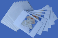 CUSTOM Greeting Cards (Blank inside) How fun can this be? Give these personalized greeting cards as a gift to the new parents or use for yourself. Send out thank you cards, birthday greetings, or send to relatives! There's nothing like a personalized greeting card with your new little precious one! Supply an image (email us here or mail it to our office and we can scan it for you). We will print your image on the front of the card and typeset a saying on the back of the card. We typically place the name of the baby and age at the bottom on the back. We can turn this around within 5 business days once we receive the image and your order. (Please add shipping time). Rush service available if you need it sooner! Size of card is 5 x 7 and opens to 10 x 7. Blank greeting card. Set of (12) CUSTOM Greeting Cards and Matching Envelopes $24.95 |