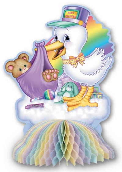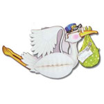 This decoration adds dimension to any baby shower! May be hung from your doorway or anywhere in your home. The stork's body folds over with white tissue paper to form the body. The stork is carrying the bundle of joy where there is a label that you may personalize by filling in the following: To:________ Date:_________ (BNN 603) |