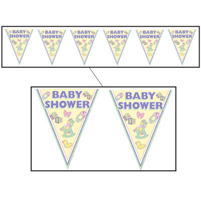 Baby Shower Pennant Banner 12 feet long, banner is made from plastic and can be hung over food tables, through doorways or however you'd like! (BNN 607) |