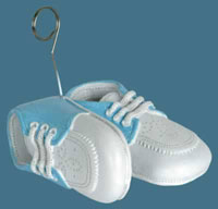 Blue Shoes Photo/Balloon Holder This 6 oz. blue shoes replica holds photos, name tags, balloons and more! Perfect for your baby-shoe-themed shower! (BSH 700) |