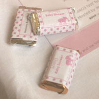 Personalized Candy Bar Wrappers - TEDDY BEAR w/Pink Gingham DesignThese labels are self-adhesive and cover the Hershey's Miniature Chocolates. *NEW* We have a Teddy Bear with Gingham Pattern available as of 10/22/07 to match the Water Bottle Label Favors! JUST ASK! Have a special design in mind? Just ask our Graphics Department! Minimum 4 sets of 15 wrapper favors. CHOCOLATE NOT INCLUDED. (CWM 304) |