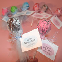 Brand New Favor Kit for 25 Guests! **A BadaBadaBingo Original** Completely adorable! Personalized with the name of the mom and her shower date, we supply Tootsie Pop Lollipops, Organza Ribbon, Round Tulle and pre-punched personalized tags. You assemble for absolutely fun and memorable favors! Assembly required. POP 600 |