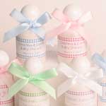 Personalized Tags + Ribbons for FavorsAlready have your favor and just want to add that personalized touch? Gingham border printed in color (blue, pink, green, lavendar or yellow) on card stock along with the satin ribbon color of your choice. Tags come pre-punched. Size is approx. 2" x 1-1/2". Please note that white ribbon goes with the green tag. We have no green ribbon for this option. (TAG 600) |