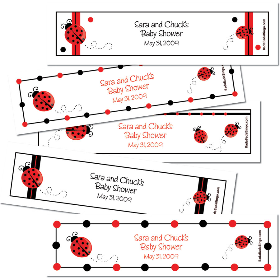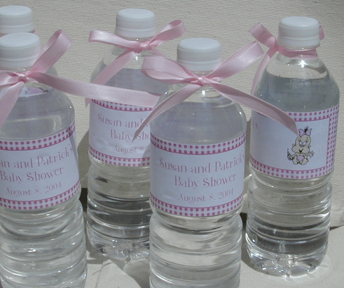$1.29 each label & ribbon-- $6.45 / Set of 5 Personalized Labels and matching ribbons (water bottle not included) Now 5.95/set of 5 Assembly Required. Default label reads: Name of Mom's Baby Shower |